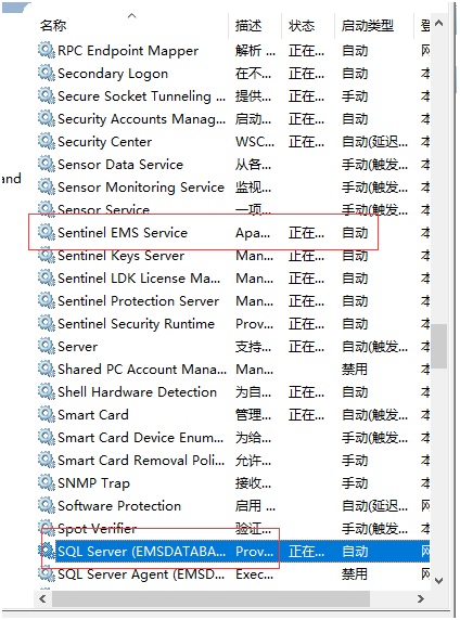 3、 重啟Sentinel EMS server和SQL Server(EMSDATABASE)服務(wù)。