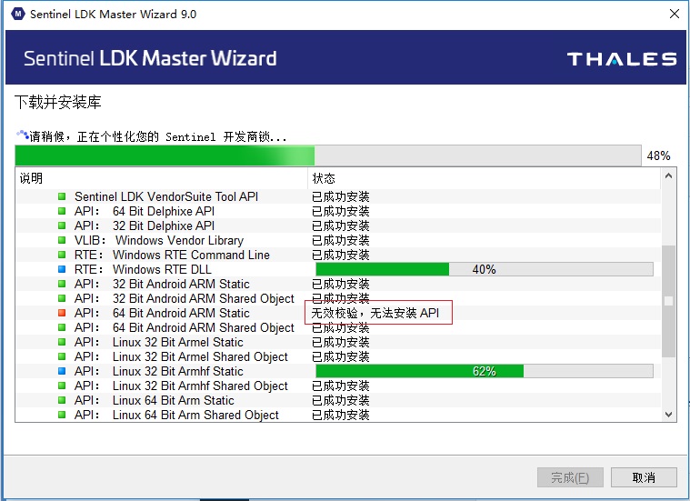 導入過程中如出現上圖這種“無效校驗”,整個開發庫都將下載失敗,請退出后重新導入。