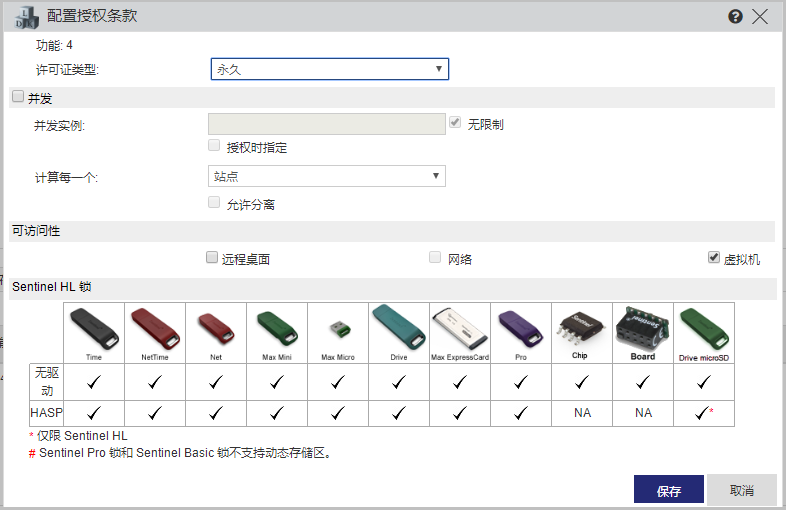 配置里面涉及到的有些功能,如到期時間,網(wǎng)絡(luò)并發(fā)數(shù)等需要特定的加密鎖才能支持。比如到期時間只有time鎖和max鎖支持,網(wǎng)絡(luò)并發(fā)只有net鎖支持。